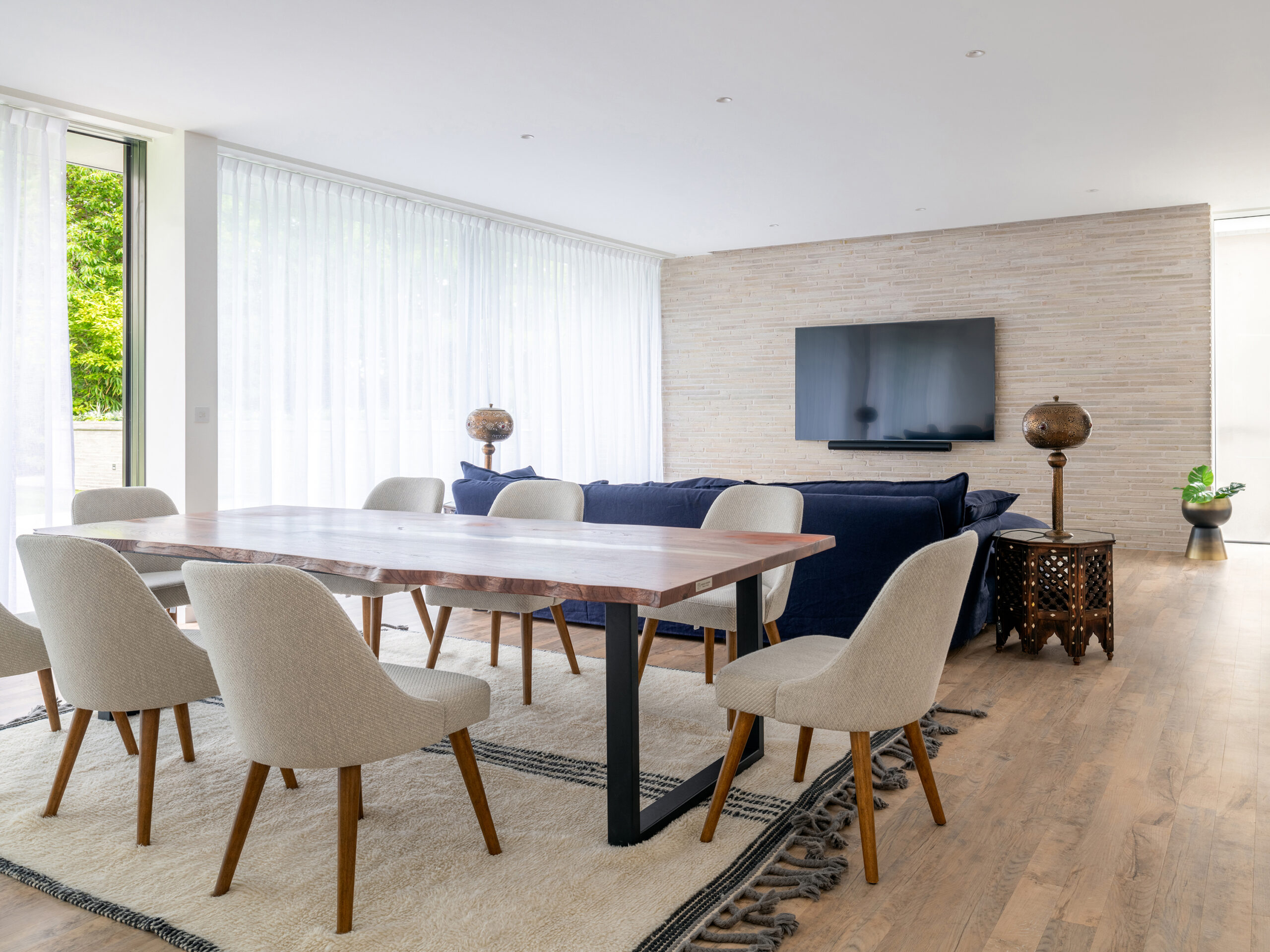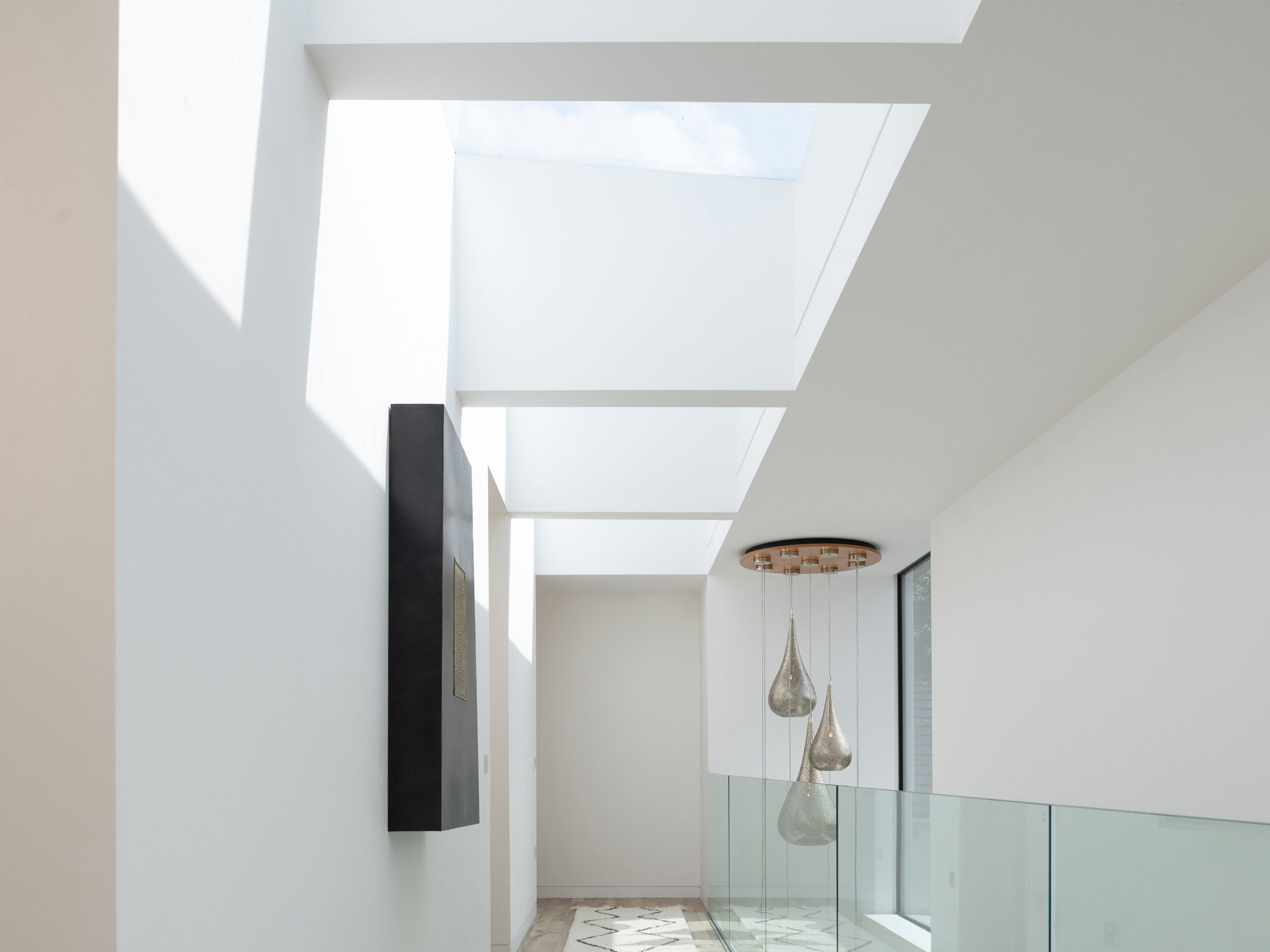It was vital to create a bright and light space, while ensuring privacy and a sense of sanctuary. Therefore, the front of the house is effectively a standalone apartment/studio to accommodate the daughter’s part-time carer – whereas the rear of the house is the true heart of the home, with views over the gardens.